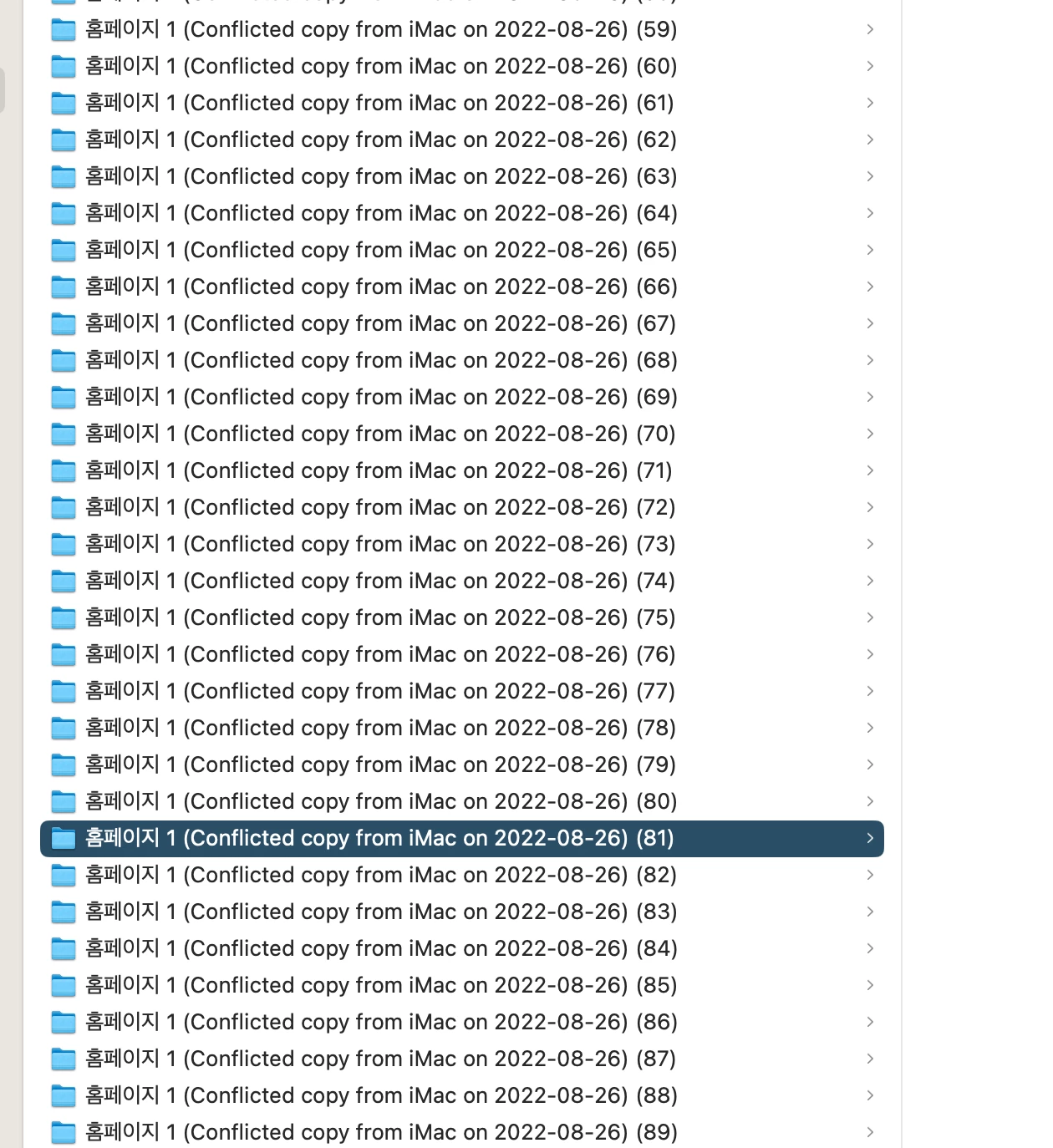 한번 Conflicted copy 로 파생된 폴더를 다 지우고 났는데 또 생기고 또생기고