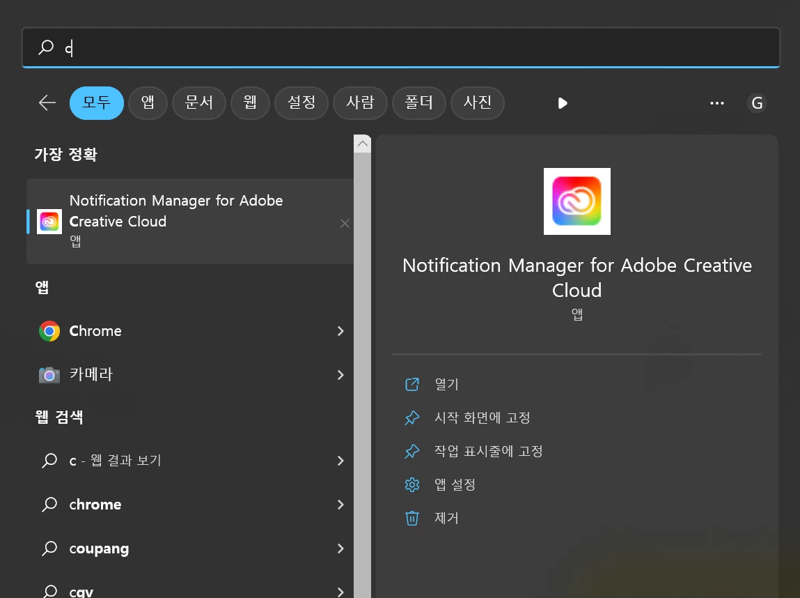 notification manager for adobe creative cloud 로 이름이 변경되어 있음.