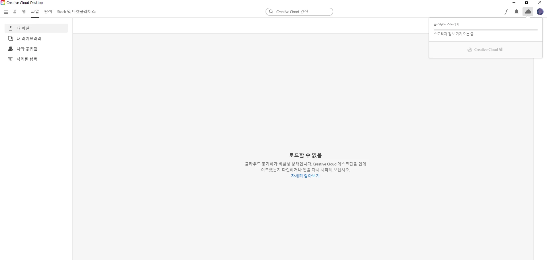 Creative Cloud Desktop 클라우드 스토리지 파일 동기화 오류