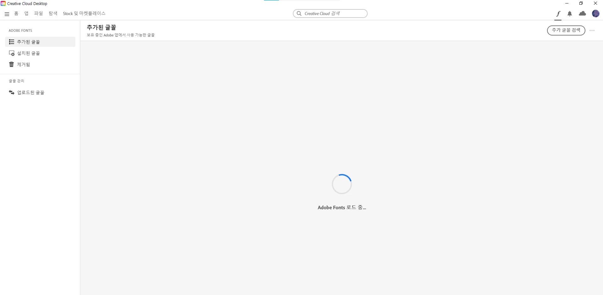 Desktop의 최근 탭에서 보였던 파일들조차 다운로드 되지도 않았습니다. (Creative Cloud Desktop 제거 후 재설치한 후 그것조차 보이지 않게 됐습니다.)
