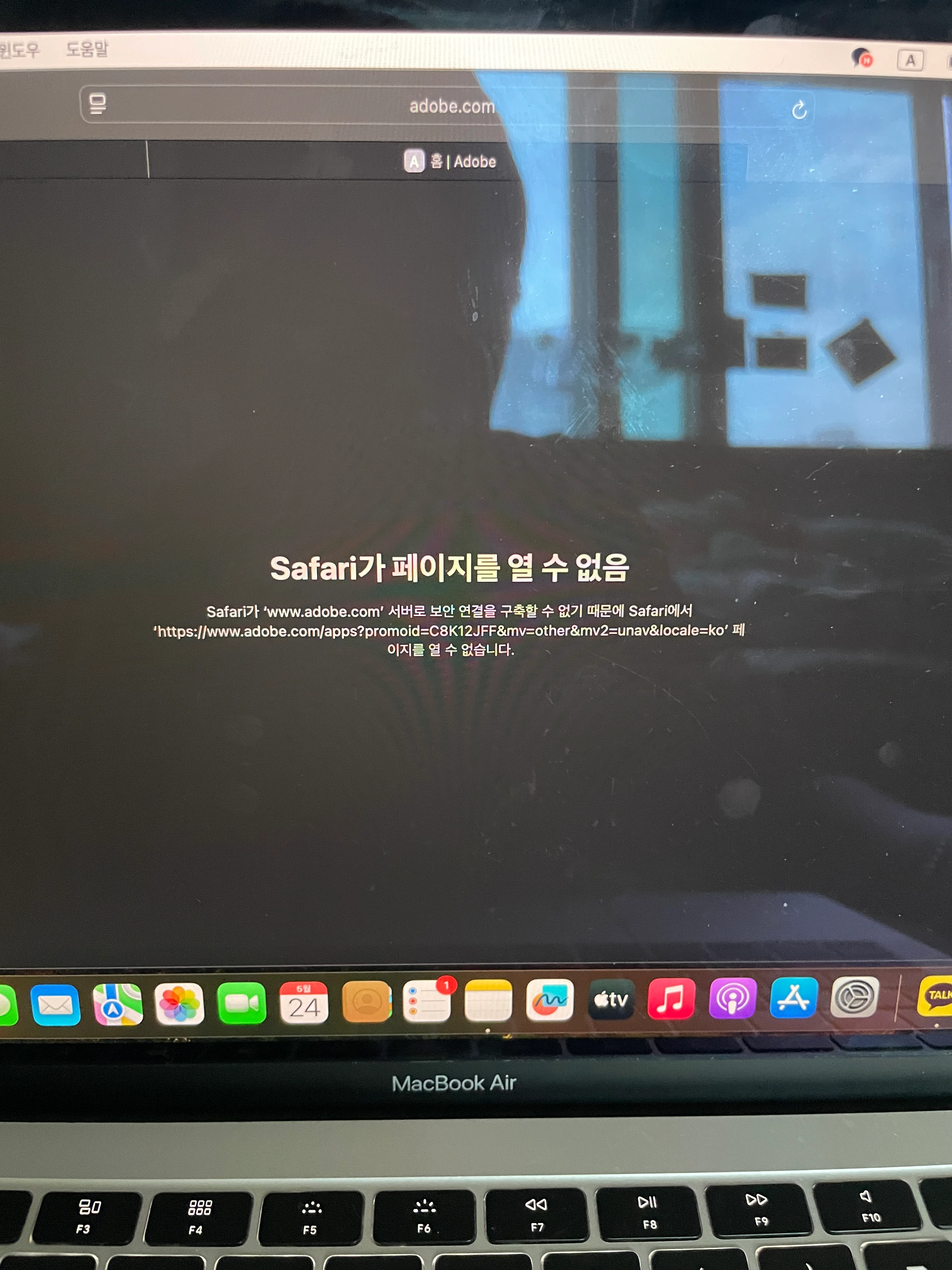 이 경우 지금 사용중인 네트워크 환경을 변경해서 확인 해볼 수 있는데 와이파이 환경에서 > 모바일 테더링드응로 테스트를 해보면서 핫스팟등을 이용해서 사용중인 네트워크의 보안에서 어도비 서버를 차단하고 있지 않은지 확인해 볼 수 있습니다.