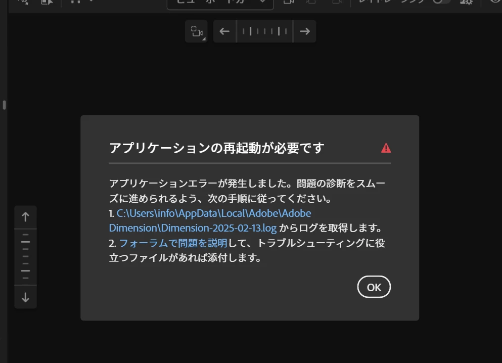 ”アプリケーションの再起動が必要です・・・からログを取得します”のエラ-