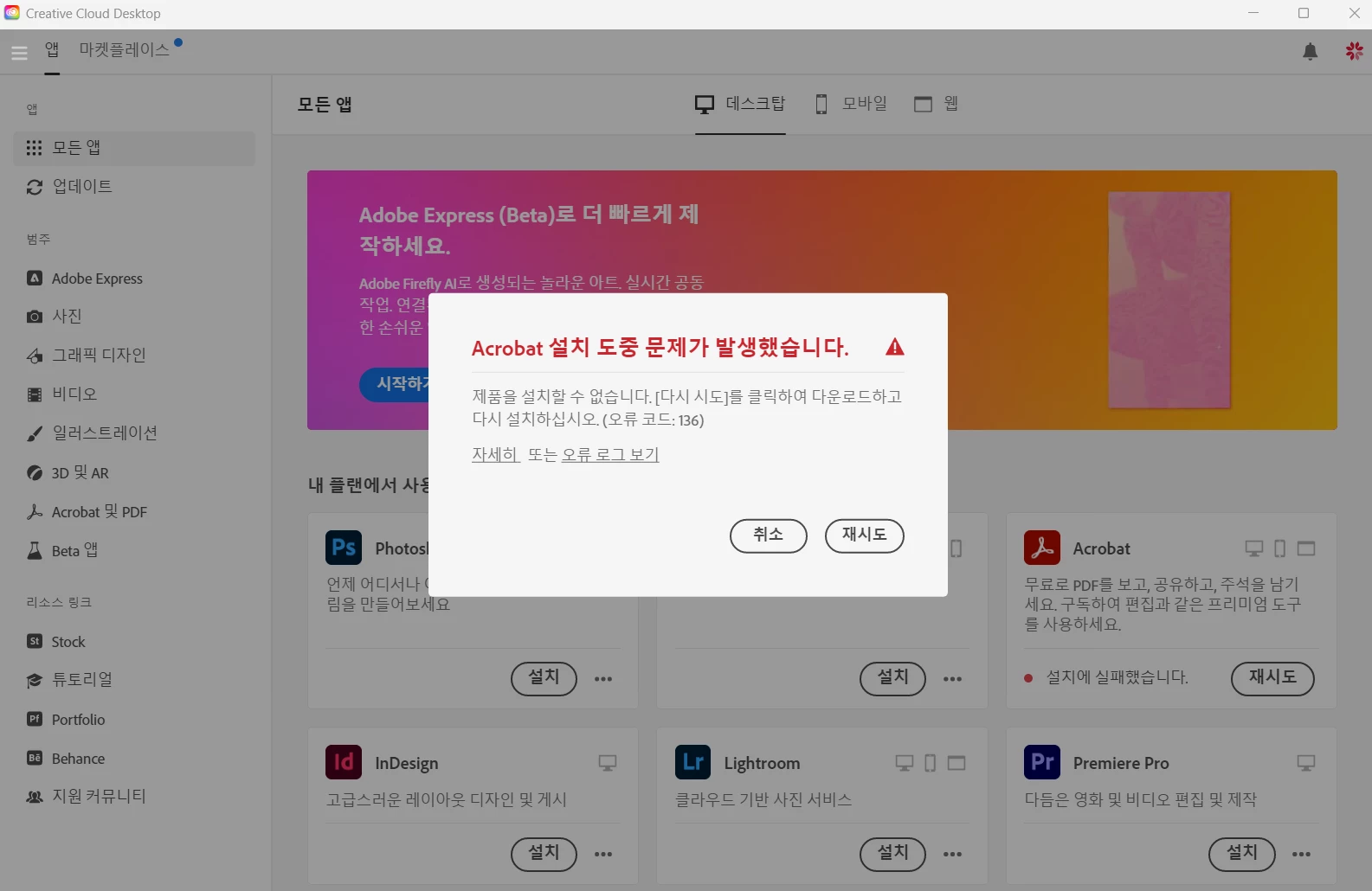 드라이브 용량문제로 이전 버전 프로그램 모두 삭제후, 새로운 드라이브에 재설치 하려는 과정에서 프로그램의 설치시 오류가 발생합니다.