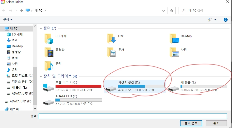 D 혹은 E로 프로그램의 설치 위치를 변경하려고 합니다.