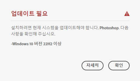 어느 시점부터 "시스템 비호환"이라는 문구와 함께 업데이트와 설치가 안 됩니다. 시스템이 비호환된 이유가 WINDOWS 업데이트인데, 현재 제 노트북은 어도비가 요구하는 WINDOWS 10 22H2 버전보다 높은 Windows 11, version 24H2 버전입니다. 어떻게 해결해야하는지 알려주세요. 제발요....