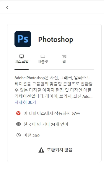 혹시 지금 보여주신 포토샵외에 다른앱들은 호환성 오류가 없을까요?