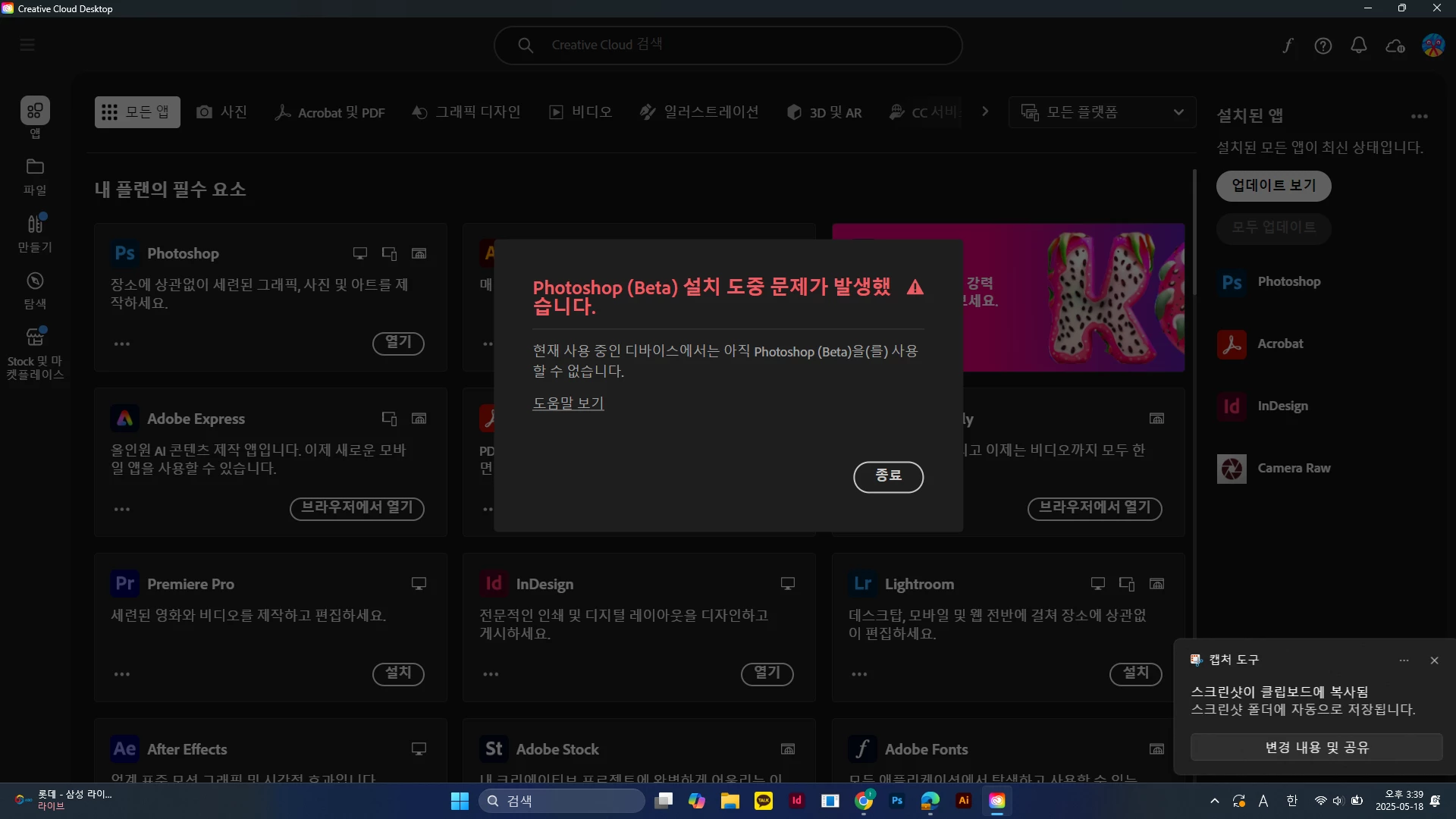 내용 읽어보시면 사용하시는 디바이스가 베타랑 호환되지 않나본데요.