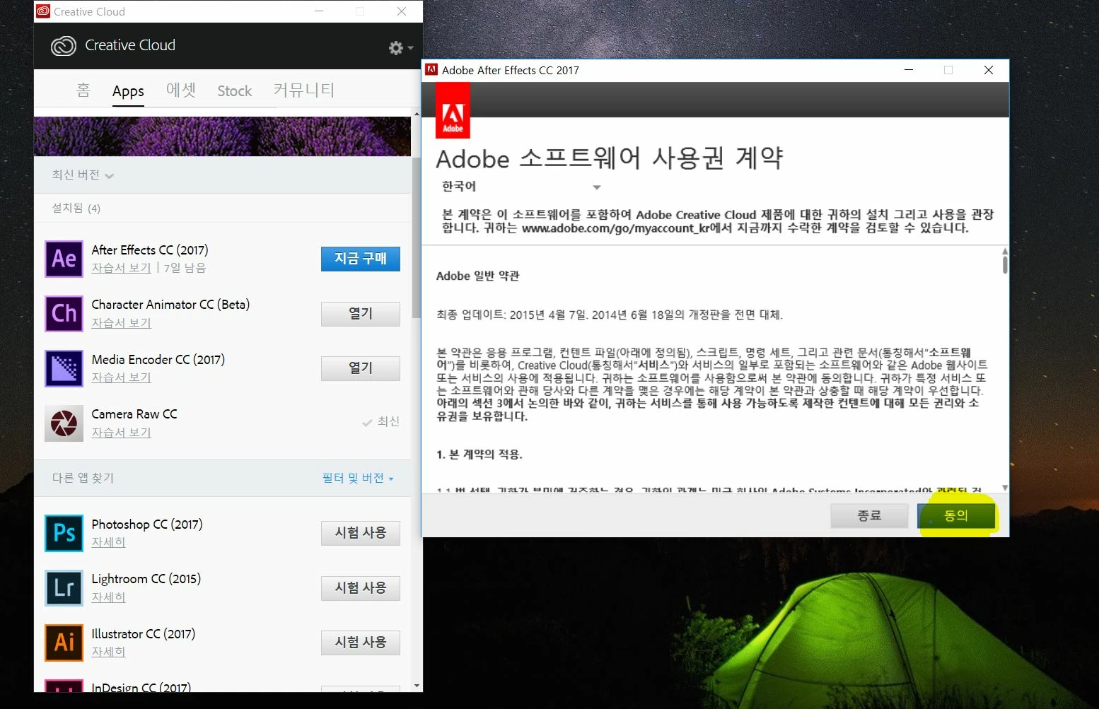 그래서 "시험사용중"에 다른것도 설치를 해보려고 해도 똑같아요.