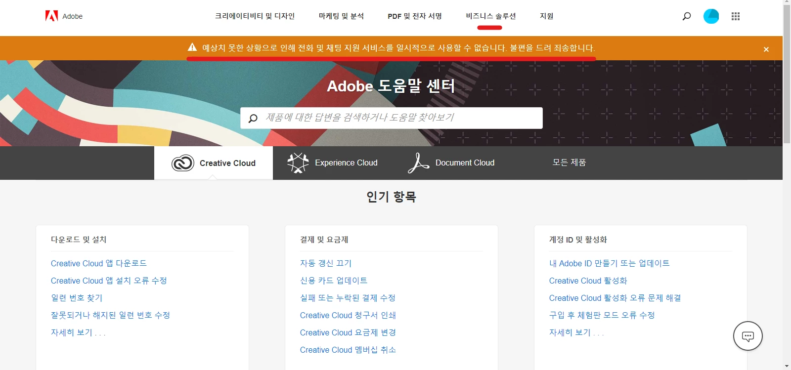 한국 사용자인데 어도비 전화 채팅 안되시는분