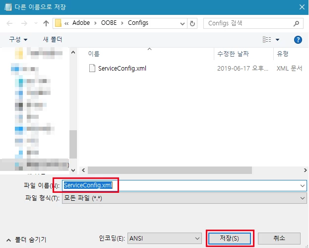 Windows 사용자 : C > Program Files(x86) > Common Files > Adobe > OOBE > Configs > ServiceConfig.xml