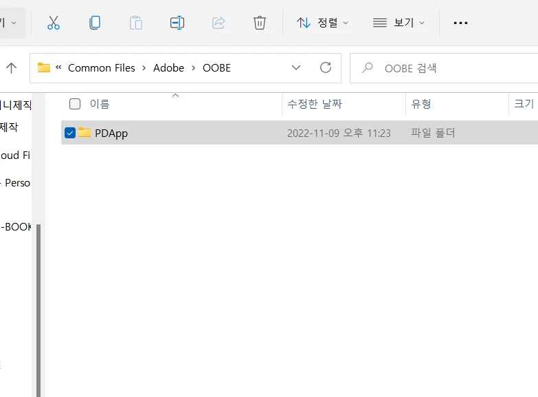 기본적으로는 숨김 처리가 되어 있어서 보기 메뉴를 통해 숨김 항목을 체크 해주시고 다시 한 번 확인 해보시기 바랍니다.