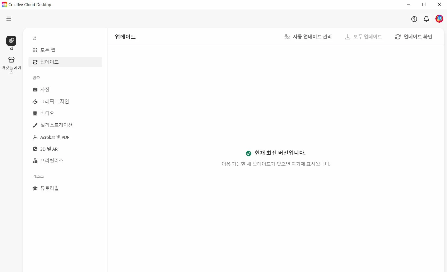 베타버전을 설치하려면 일단 최신버전의 크리에이티브 클라우드를 구동하셔야 하는데