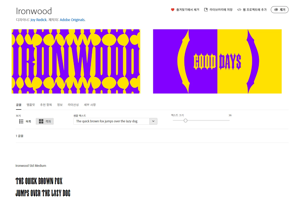 어도비는 계속 이용중이고, 제가 사용할 폰트는 Iron wood 입니다.