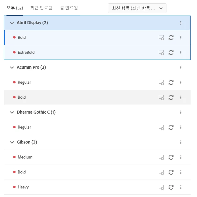 Creative Cloud 데스크탑 앱의 폰트 메뉴에서 폰트삭제를 진행해보세요.