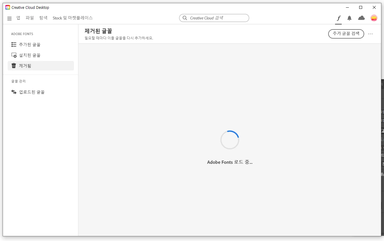 크리에이티브 클라우드 폰트가 계속 로딩이 되는데 해결방법이 없을까요?