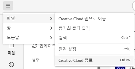 - 종료를 통해 Creative cloud에서 로그아웃을 진행 합니다.