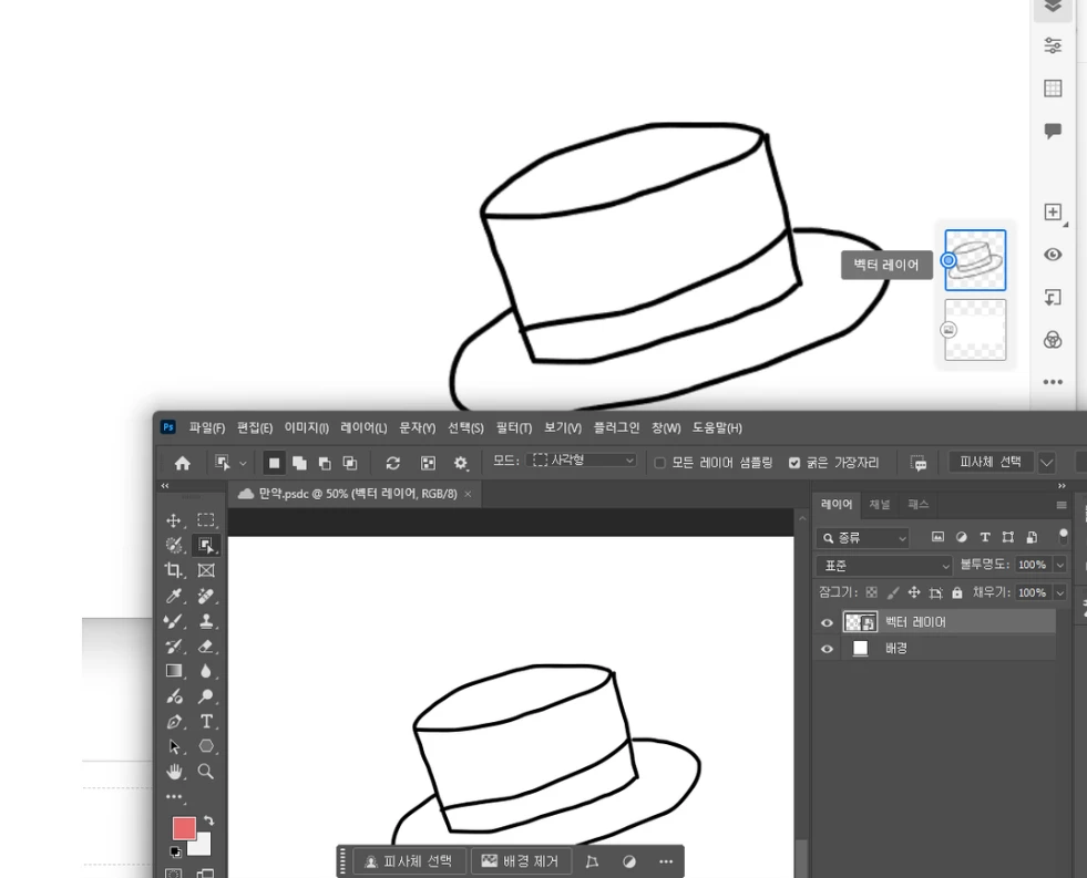 저는 프레스코에서 포토샵으로 넘어온후, 레이어를 '배경으로 이미지 병합' 을 진행한 상태로