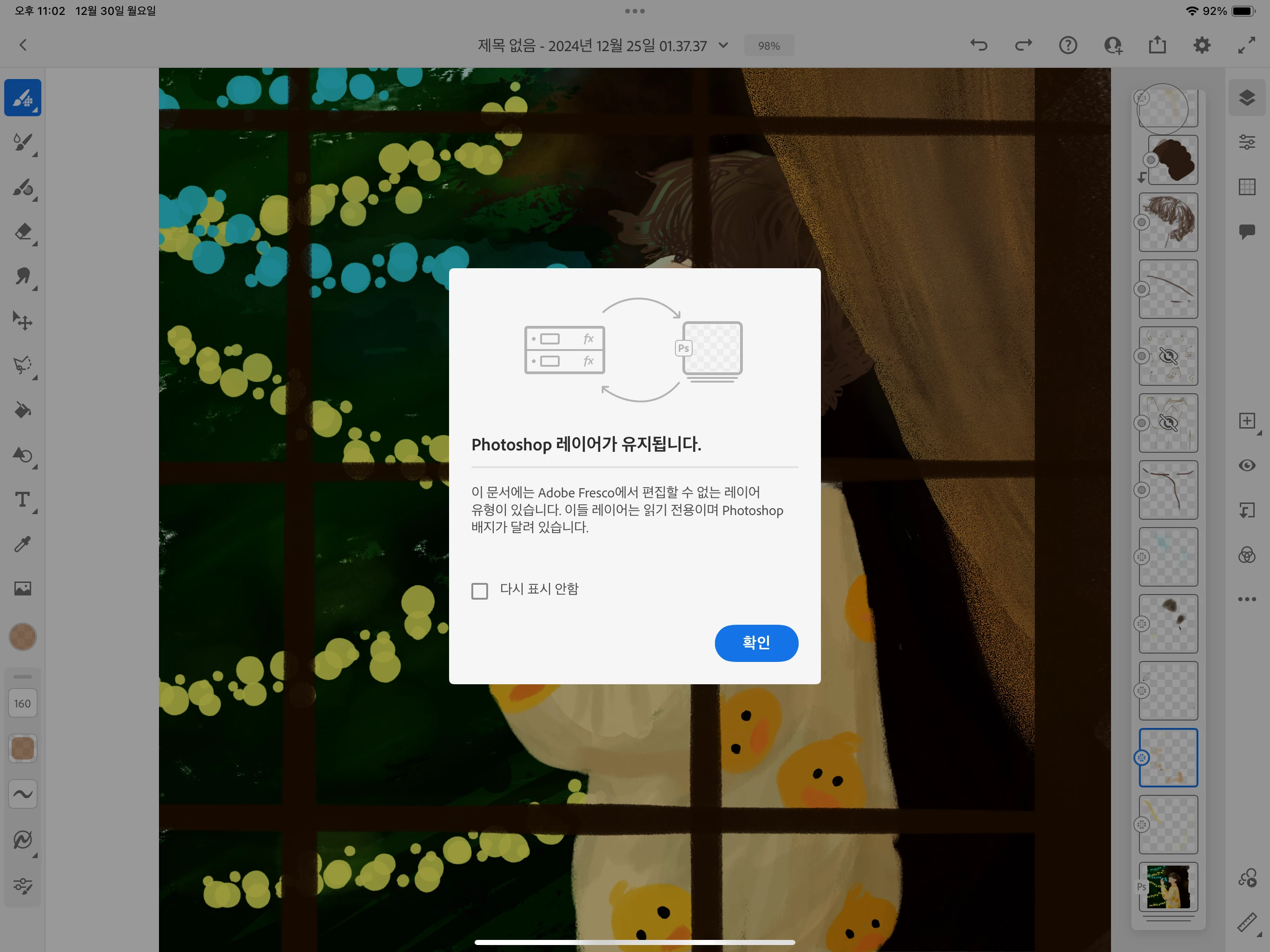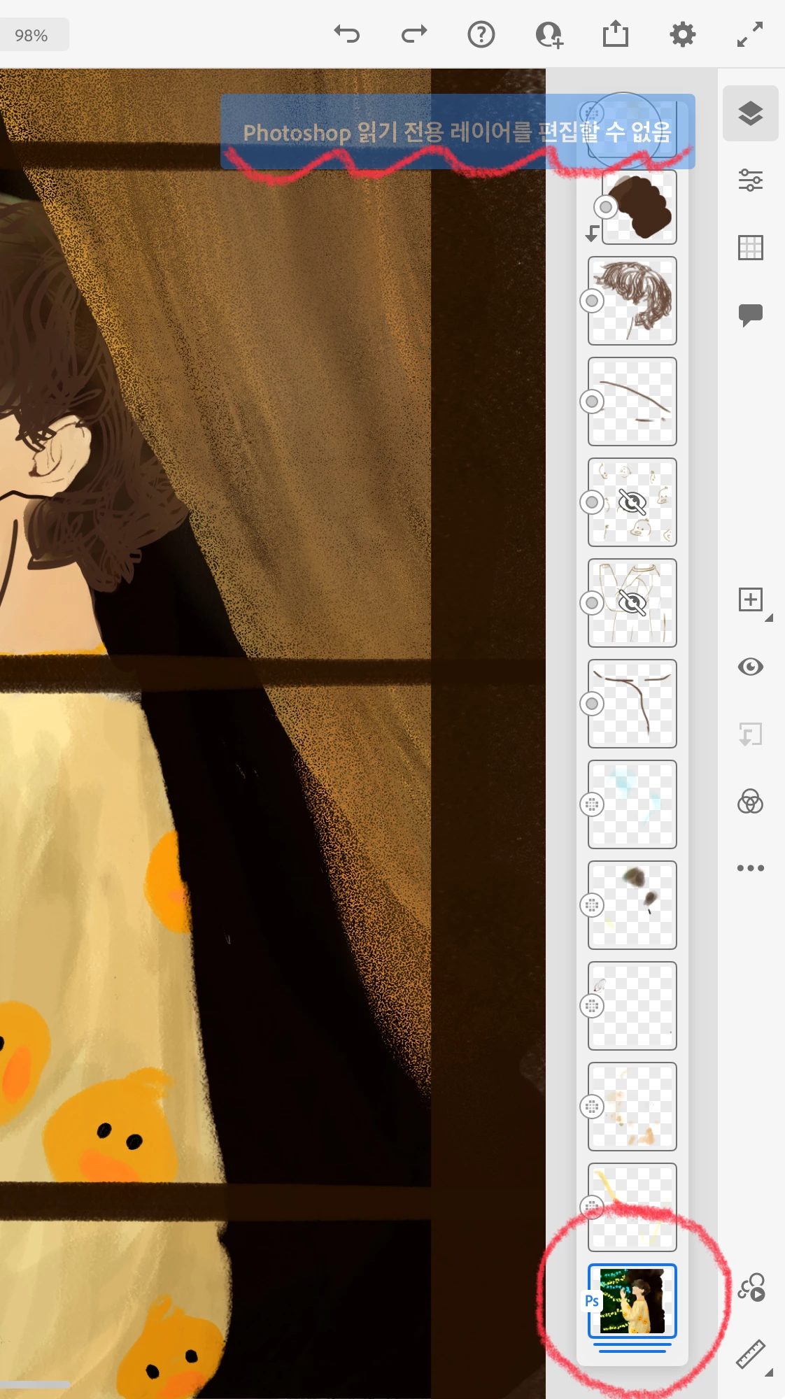 그림작업하던 거 나갔다 들어왔는데 레이어가 포토샵 읽기전용으로 바뀜