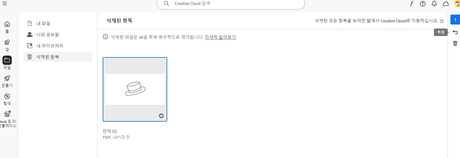 그렇다면 삭제된 항목에서 해당 파일이 있는지 확인후
