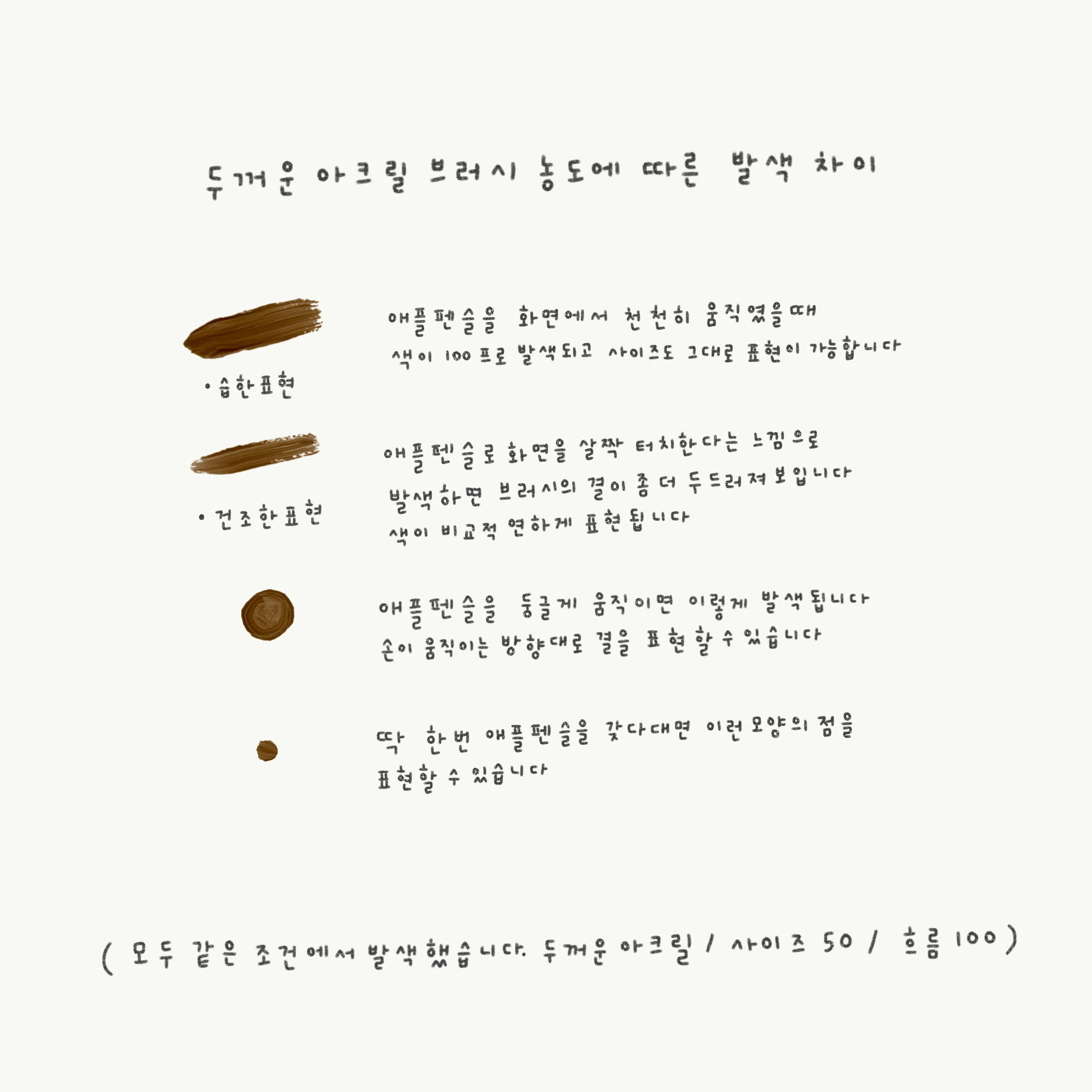 과거 어도비 스케치 앱에 있는 아날로그 질감의 브러시가 참 좋았는데요. 특히 (1) 소프트 파스텔 브러시, (2) 두꺼운 아크릴 브러시, (3) 두꺼운 수채화 브러시의 질감은 아무리 비슷한 브러시를 찾아도, 어도비 스케치에서 구현할 수 있는 느낌을 똑같이 재현하지는 못 하는 것 같아요. 어도비 스케치의 일부 브러시라도 프레스코에 적용해주시면 정말 감사할 것 같습니다