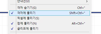 혹시  보기에서 격자에 물리기 혹은 픽셀에 물리기가 활성화 되어있나요?