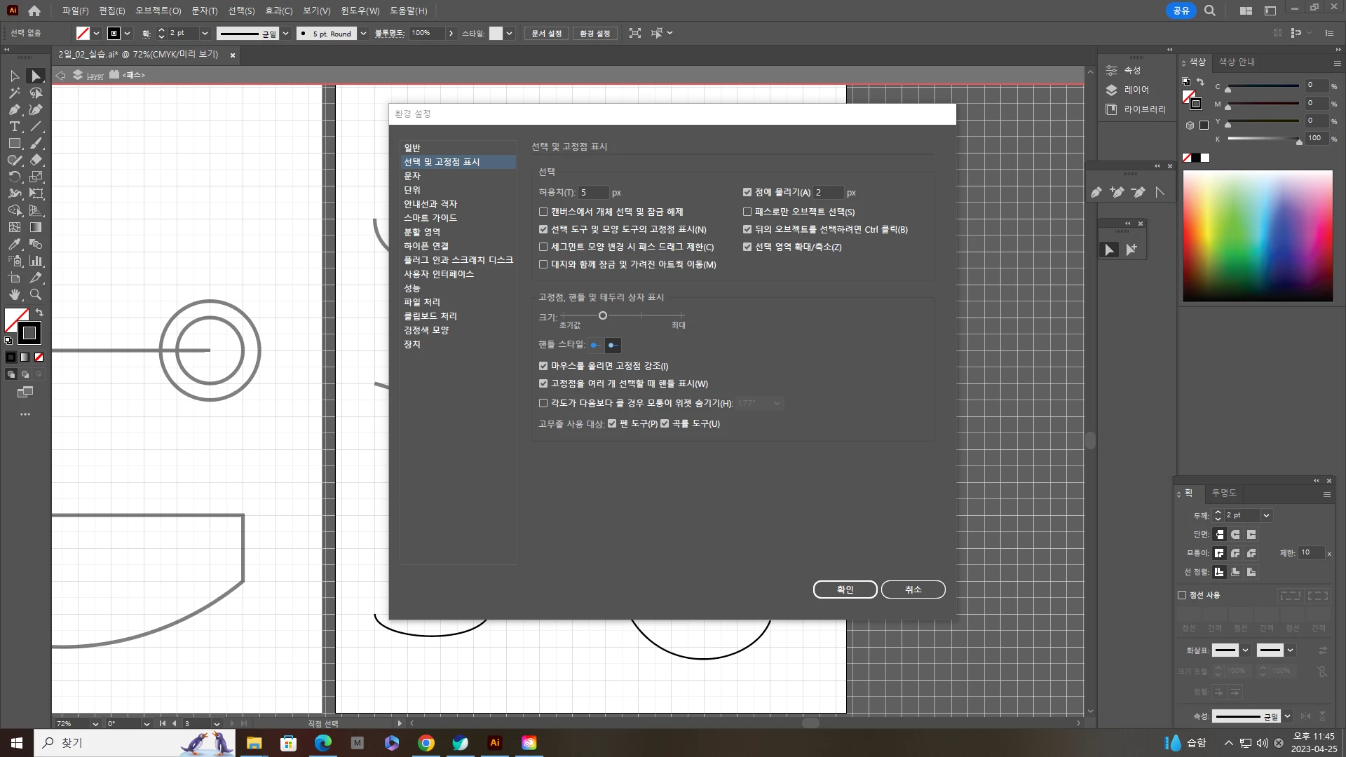 일러스트를 배우고 있는 중인데요, 곡선을 만들때 핸들러가 나오지 않아서 당황스러워요. 원인이 뭔지 모르겠어요 ㅠㅠ 도와 주세요