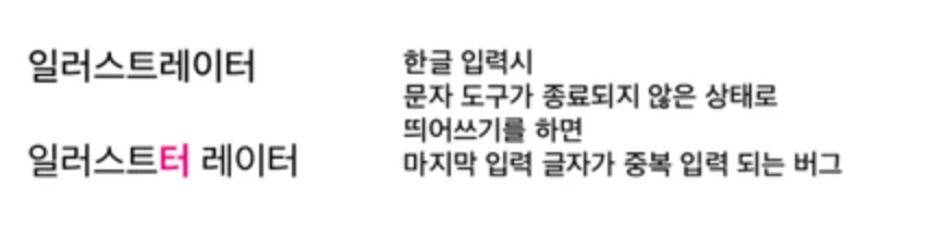 그 동안 유저 요청이 많았던 일러스트레이터에서의 한글 입력 오류가 있었는데요,