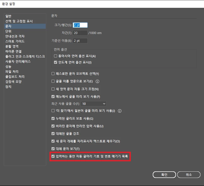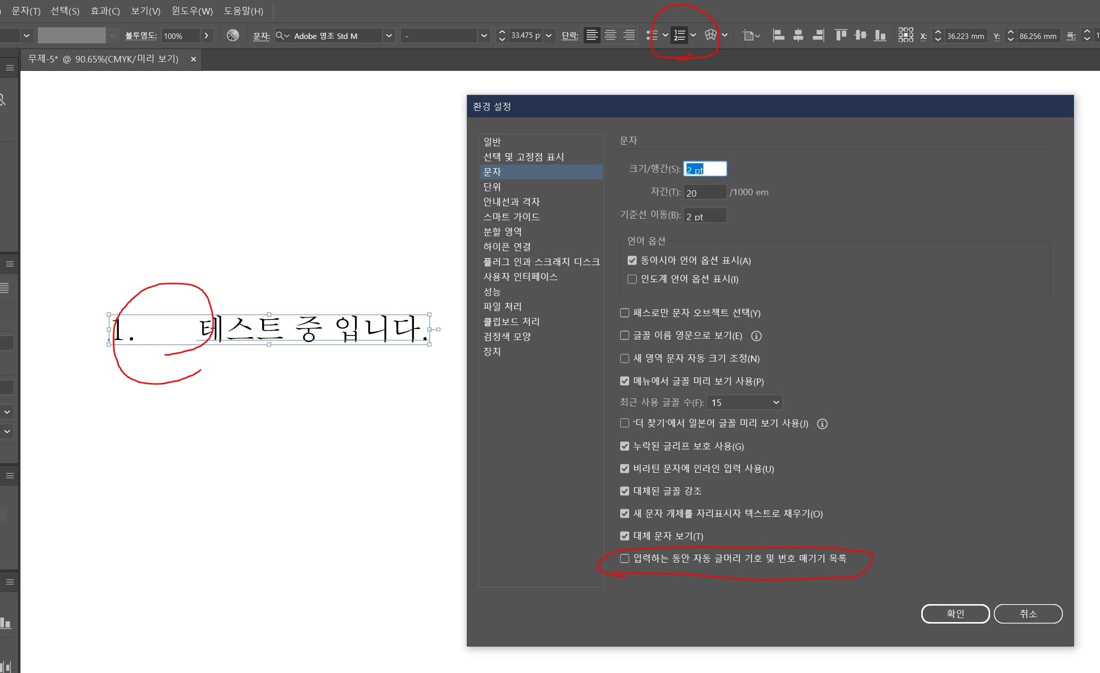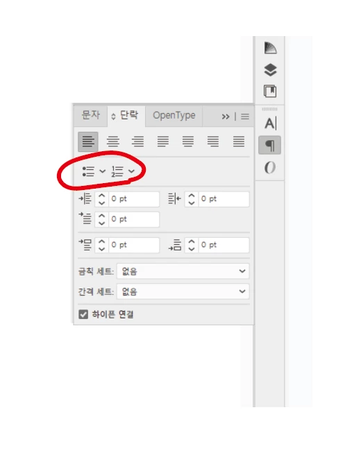 일러스트레이터에서 글머리 기호 및 번호 매기기를 없애고자 한다면 아래의 문서를 참고해주세요.