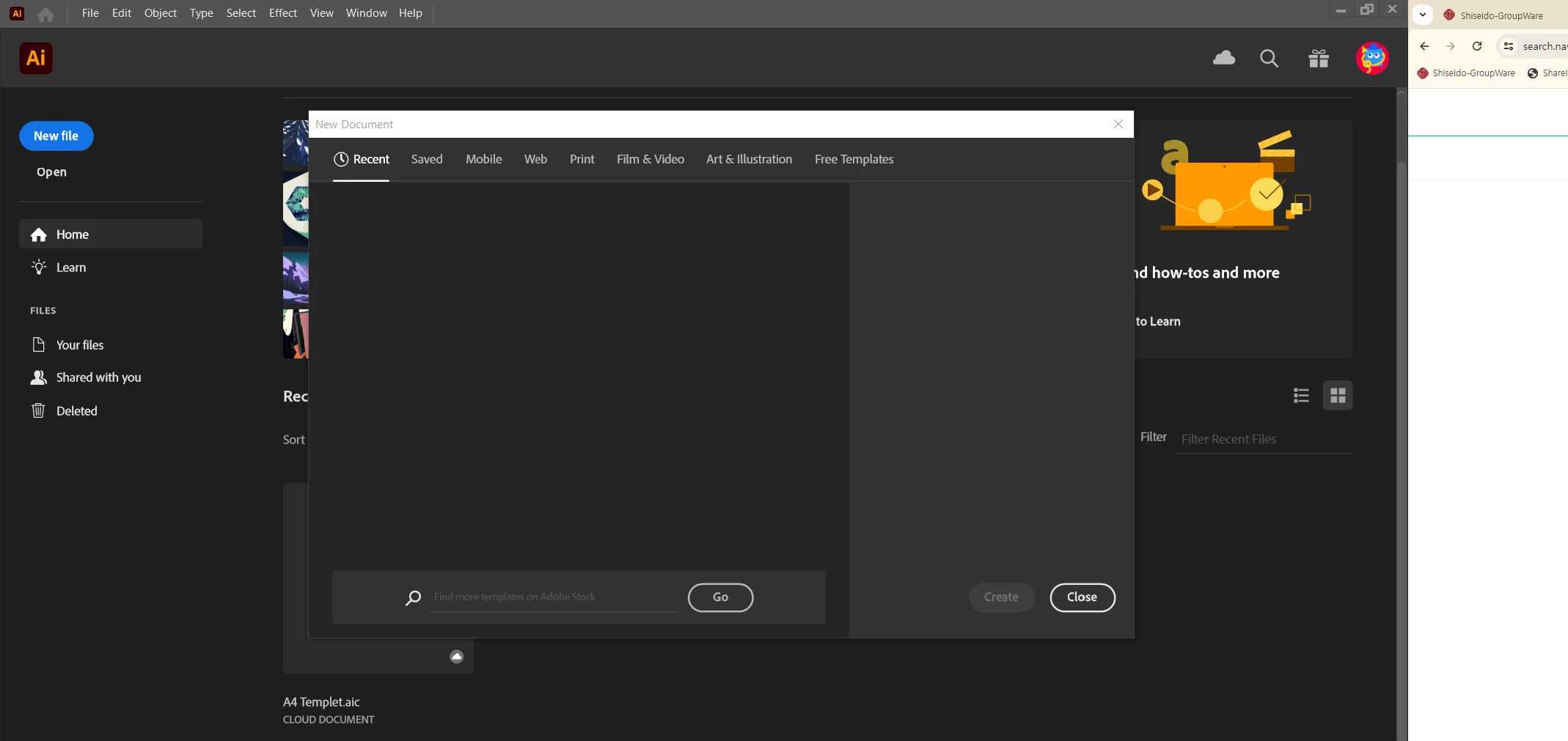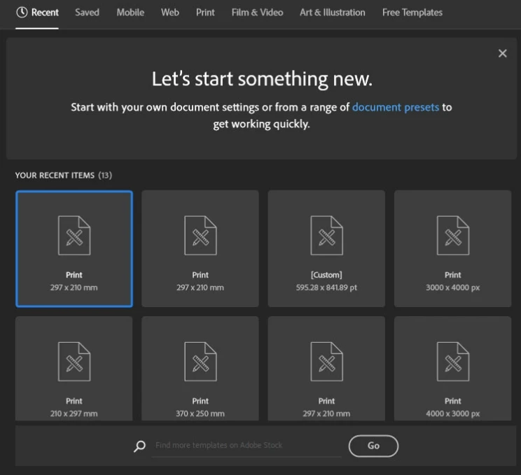 new document 실행시, stock 템플릿만 보이고 기본 템플릿이 보이질 않네요..