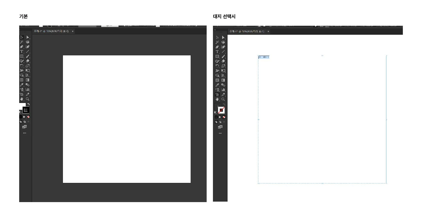 작업할땐 배경색이 짙은 회색이었는데, 대지를 선택하면 배경이 흰색으로 바뀝니다.