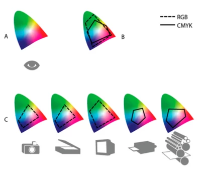 색상 관리 시스템이 없는 경우 색상 사양은 장치에 따라 달라집니다. 제작 프로세스가 단일 매체용으로 철저히 관리되는 경우에는 색상 관리가 필요하지 않습니다.