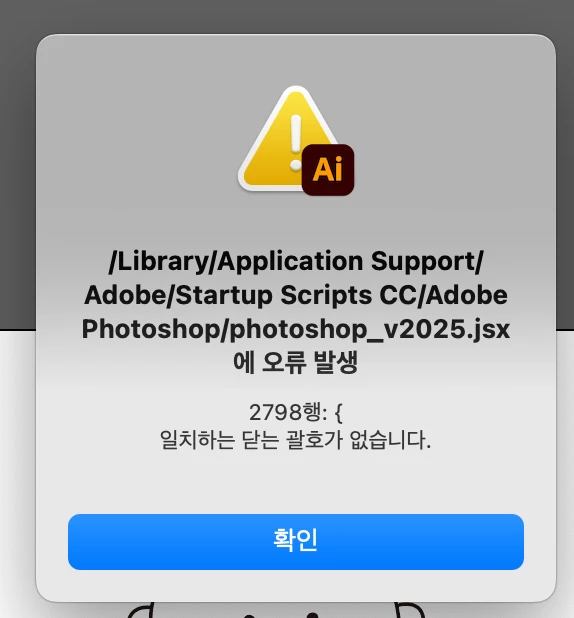 해당 경로에 있는 마지막 경로 Adobe Photoshop의 폴더의 이름을 Adobe Photoshop.old로 변경하고 나서 앱을 실행해 보시겠어요?