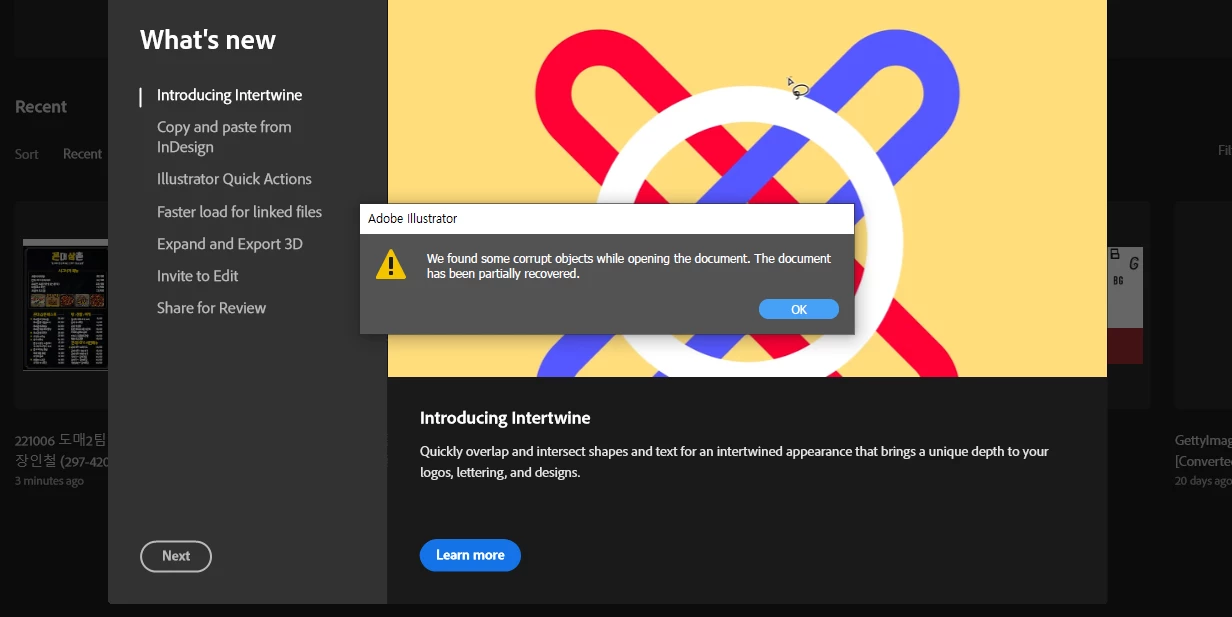 안녕하세요 컴터를 백업하고 나서 어도비를 다시 깔고 작업하려는데 전에 디자인햇던 파일이 전부 아래 첨부파일처럼 열립니다..
