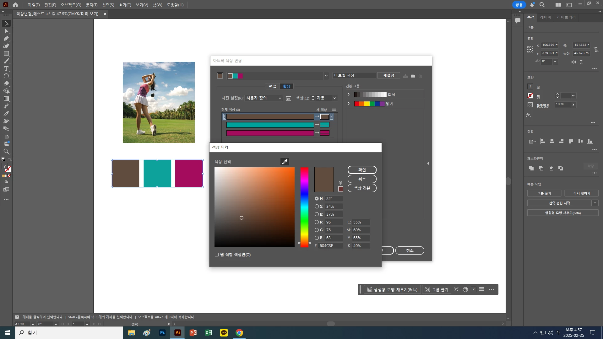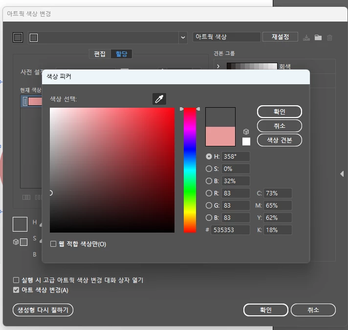 아트웍색상변경에서 색상피커의 스포이드로 다른 개체의 컬러를 가져오고 싶어요.