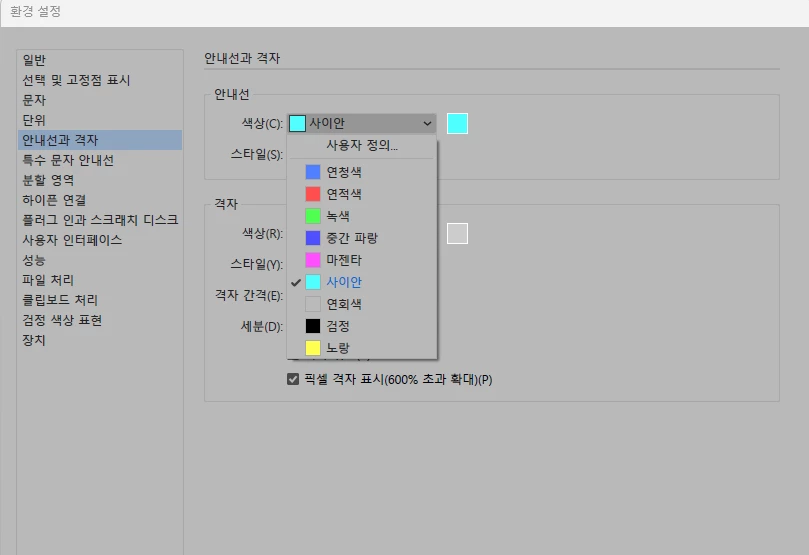 안내선 색없음 지정하는 방법