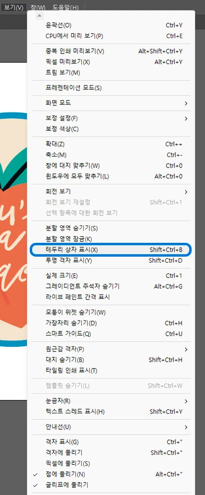 A. 상단 메뉴 보기 - 테두리 상자 표시를 눌러보세요. ( 단축키 : Shift + Ctrl + B )