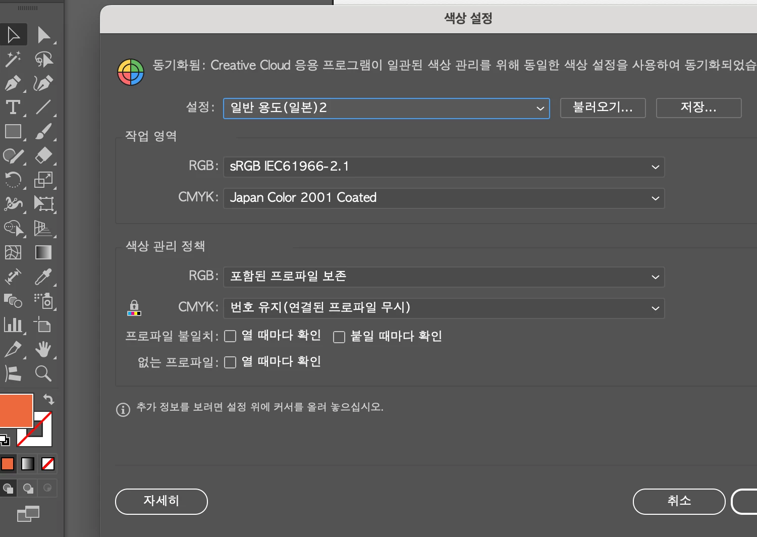 어도비 일러스트레이터 [웹색상영역 외 경고] 자동보정 문제