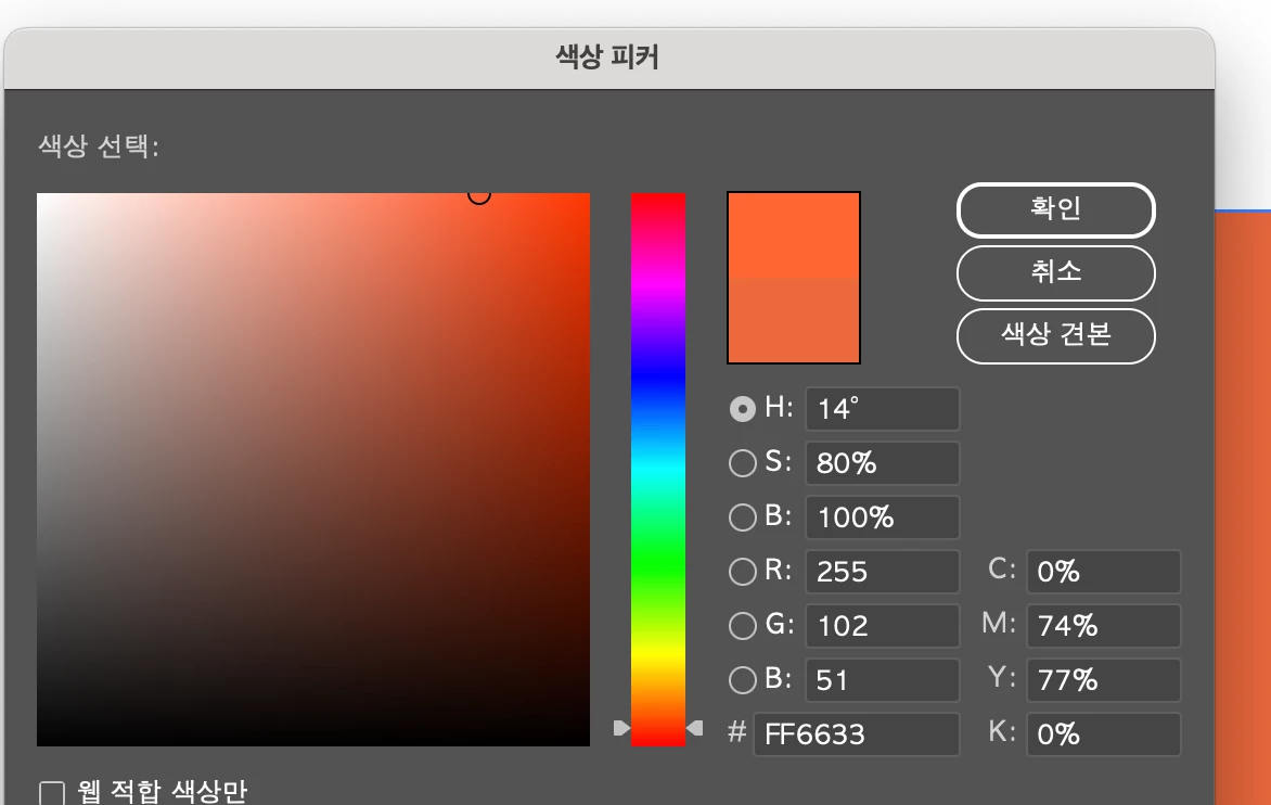웹 적합 색상으로 지 혼자 변경되어 형광으로 바뀌고,