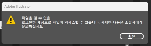 노트북에서 작업한 일러스트레이터 문서를 클라우드에 업로드해 데스크탑에서 작업하려고 하니 제 파일인데도 아래처럼 계속 파일 엑세스 권한이 없다고 뜨고, 클라우드 동기화가 되지 않아 문의드립니다!
