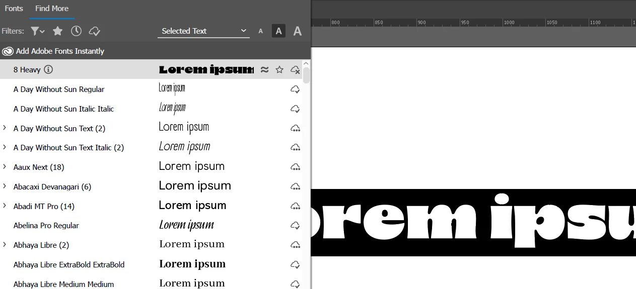 더찾기 즉 Find More 에 있는 폰트들은 실제로 지원을 하는 폰트이며 해당 폰트들에 커서를 올렸을때 미리보기를 확인할 수 있습니다.