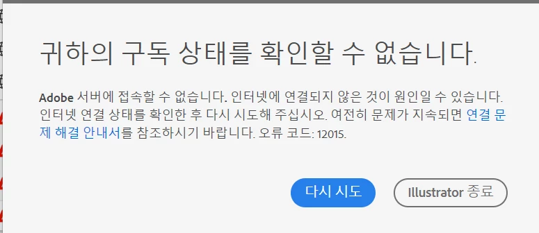 사용자 분의 인터넷 이용 환경과 Adobe 서버 간의 연결이 원활하지 않은 듯하네요.