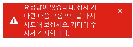 요청량이 많습니다. 잠시 기다린 다음 프롬프트를 다시 시도해 보십시오 메시지