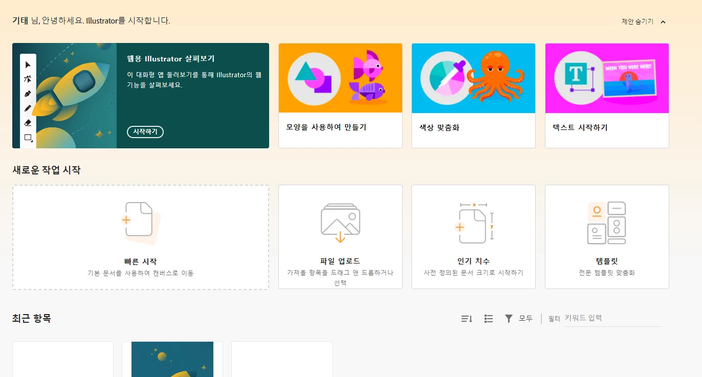 웹버전 일러스트 템플릿 기능을 눌러서 기존 템플릿 자료 누루면 계속 애ㅑ러가 나타납니다!!!
