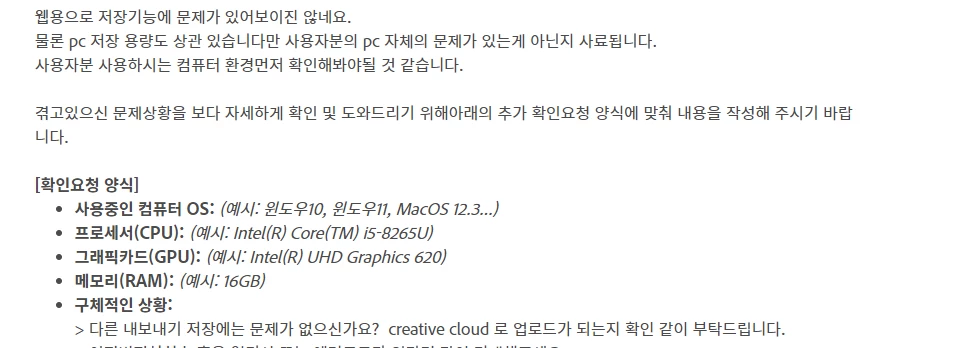 PC에 이미지 저장을 위한 남은 용량은 충분한지도 확인해 보시겠어요?