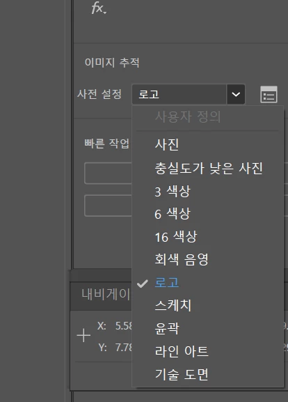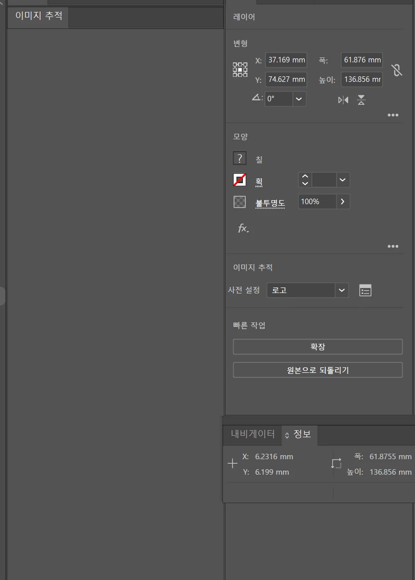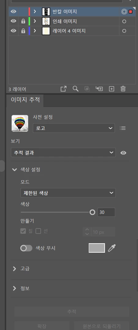 업무적인 부분으로 계속 사용해 왔었고, 포토샵에서 psd로 받아온 파일 중 레이어 일부를 벡터화 시키기 위해 이미지 추적 > 초기값 설정 > 옵션에서 고급 탭을 만져왔는데 현재 이미지 추적시 초기값 설정 사라짐, 다른 버튼 누를 경우 탭이 아예 안뜨거나 고급 탭을 누를 경우 화면이 사라져 버리는 에러가 발생됩니다.