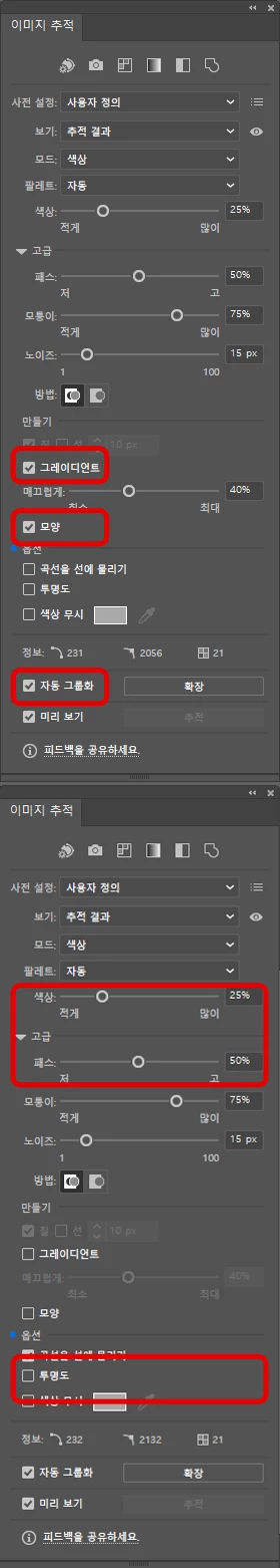 Illustrator에서 이미지 추적 기능을 사용할 때,