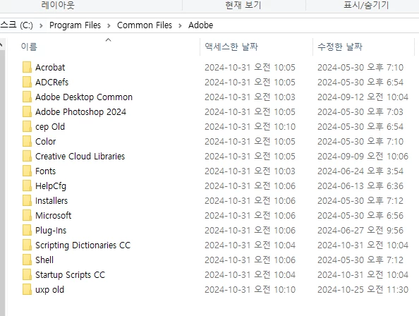 그래서 저는 어도비 커뮤니티랑 유튜브에 있던 조치들을 시행했습니다.