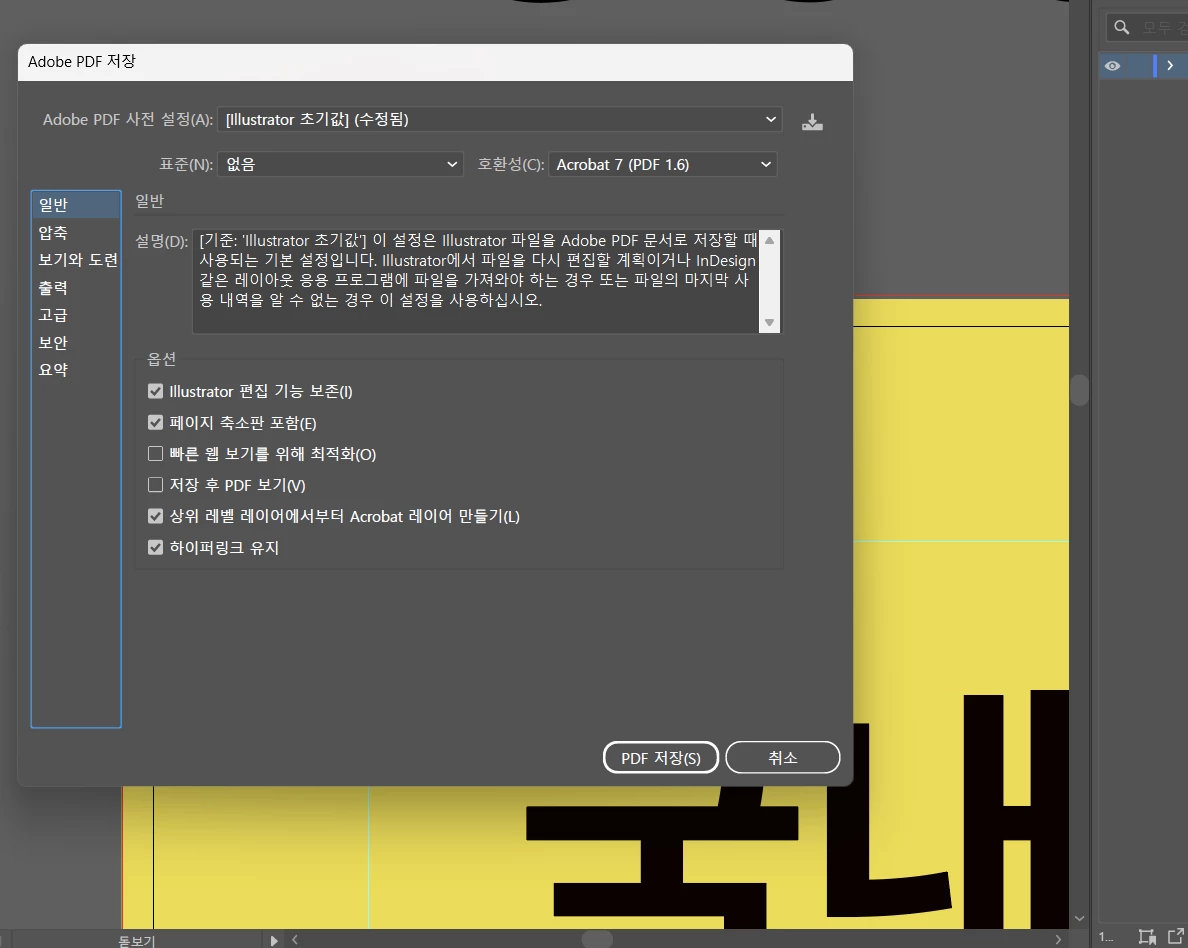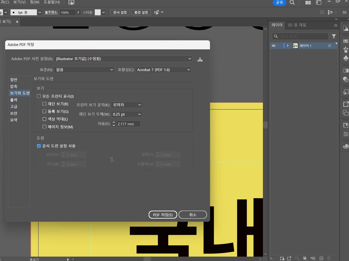 일러스트레이터에서 도련을 표시하고 pdf로 내보내기를 했는데