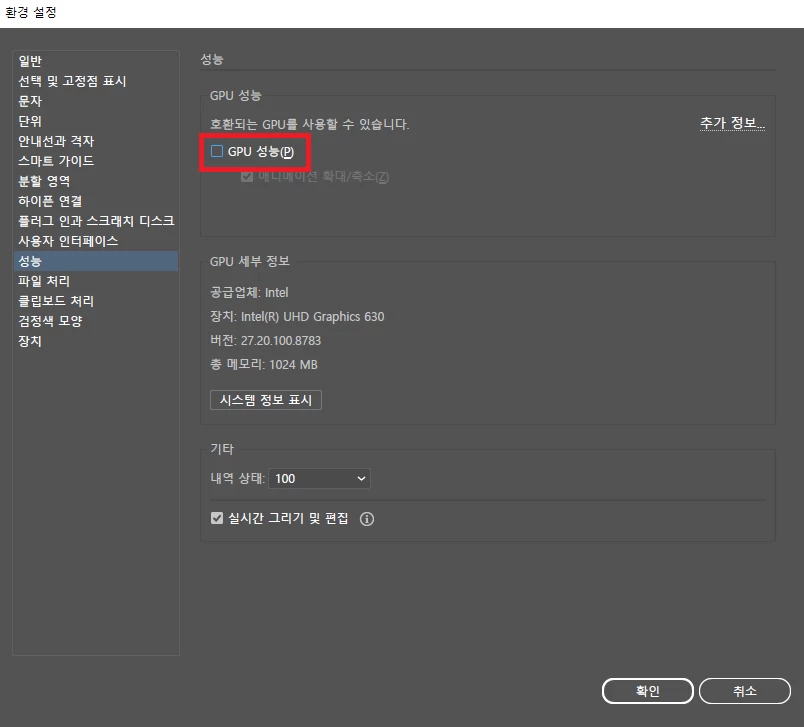 GPU 프리뷰에서 문제가 보여서 CPU프리뷰로 보니까 또 문제가 없어지고..