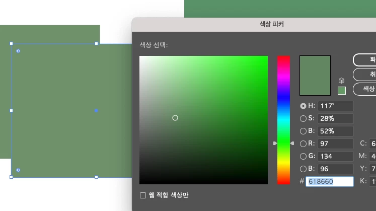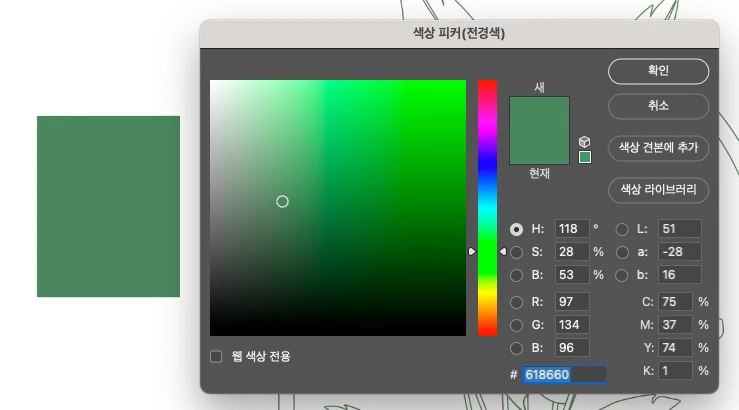 일러스트레이터와 포토샵의 색상코드값이 다릅니다